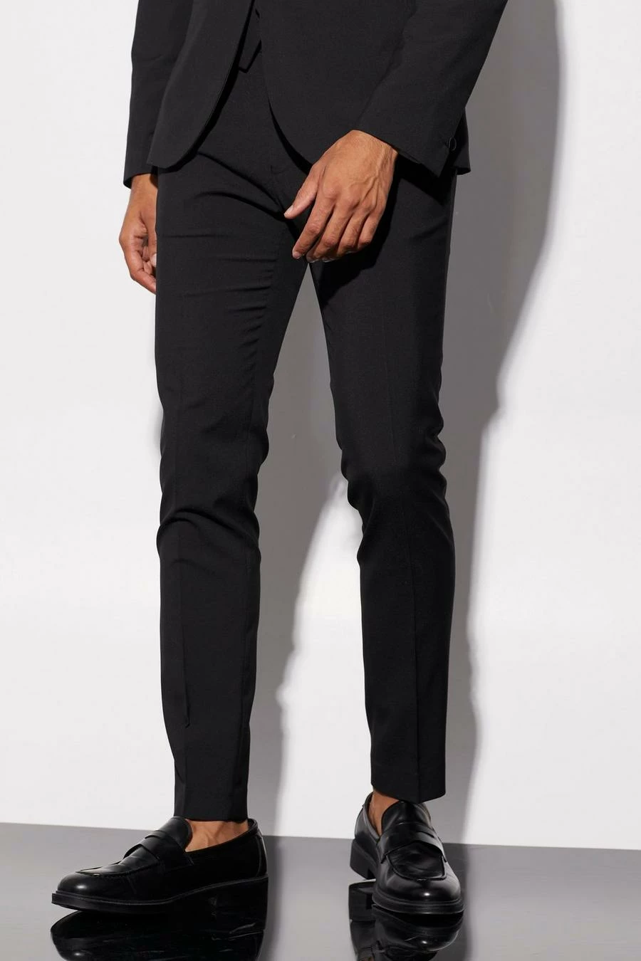 BLACK SKINNY TUXEDO SUIT JACKET AND TROUSER Black