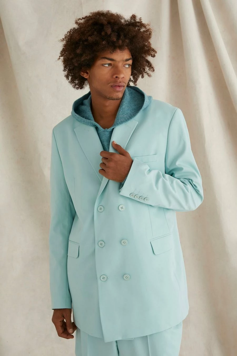 Blue Plain Boxy Oversized Suit Blue
