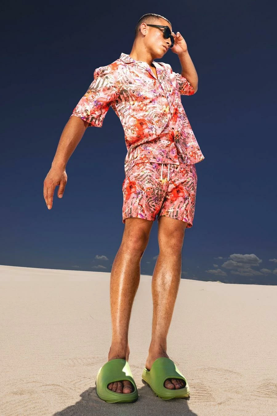 Be bold with this men’s printed set. Matching clothes is the new trend to be part of this season. This men’s printed 2-piece set is dream-worthy. It can be worn separately or together, that’s the beauty of this outfit’s versatility. Match the bottoms with a plain tee or vice versa if you want to change up the look. Perfect for all occasions, whether it’s a party, meal out or you fancy looking a little bit extra, this matching set has your name written all over it.