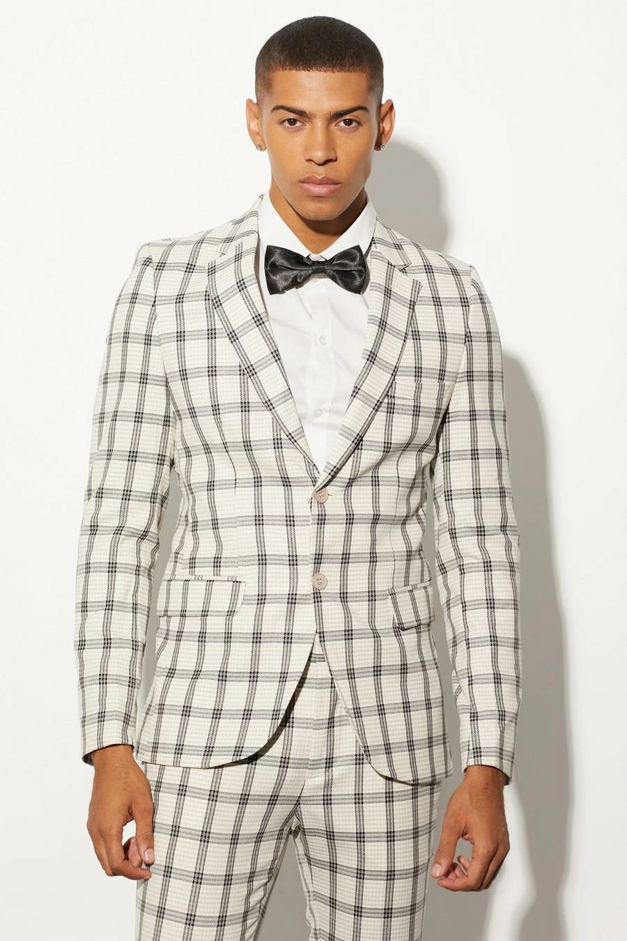 ECRU SUPER SKINNY CHECK SUIT JACKET AND TROUSERS Ecru