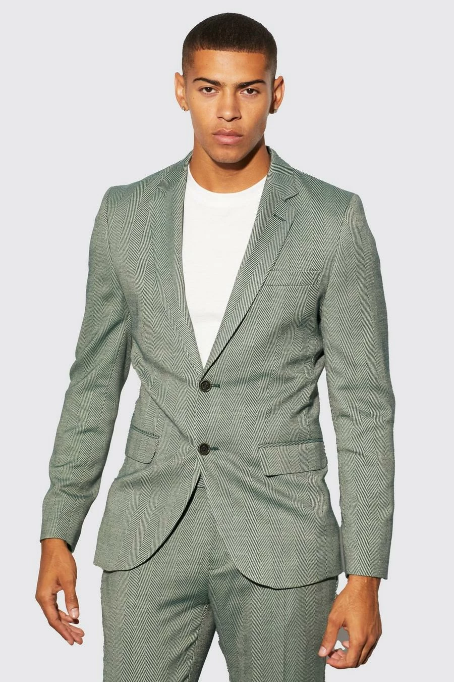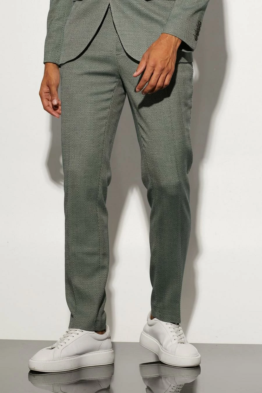 GREEN SKINNY HERRINGBONE SUIT JACKET AND TROUSERS Green