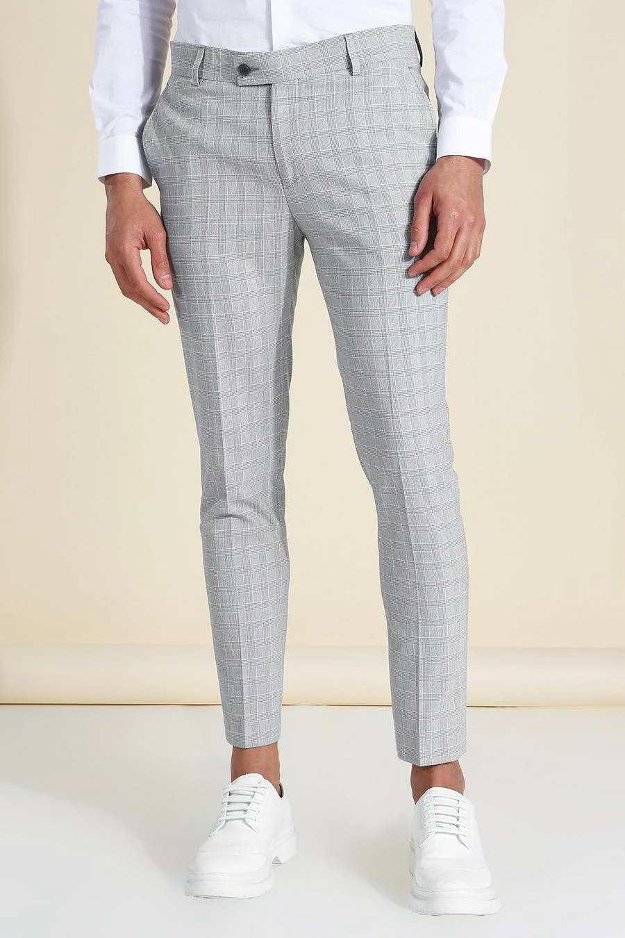 Grey Skinny Check 3 Piece Suit Grey