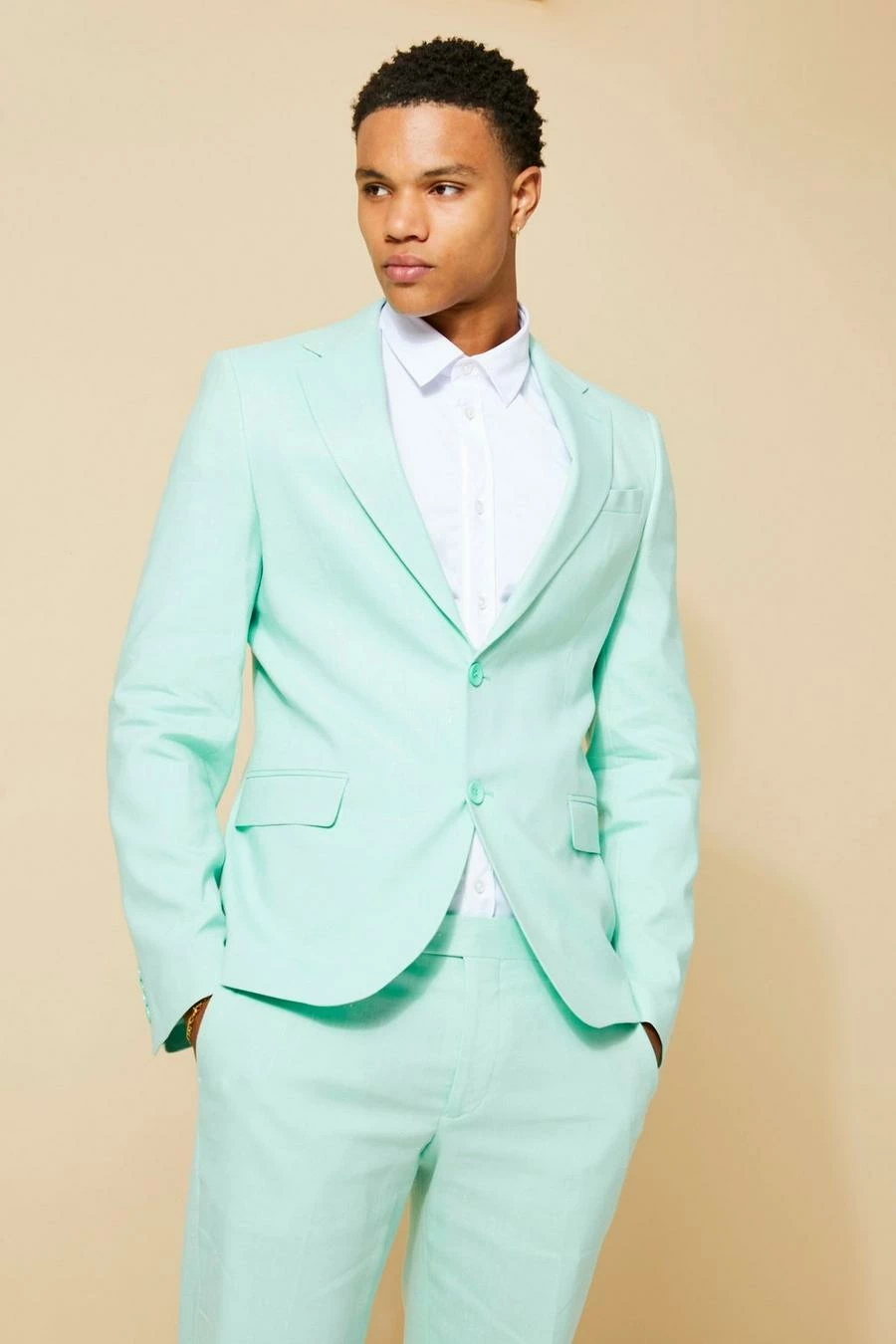 MINT SLIM LINEN CROP SUIT JACKET AND TROUSER Mint