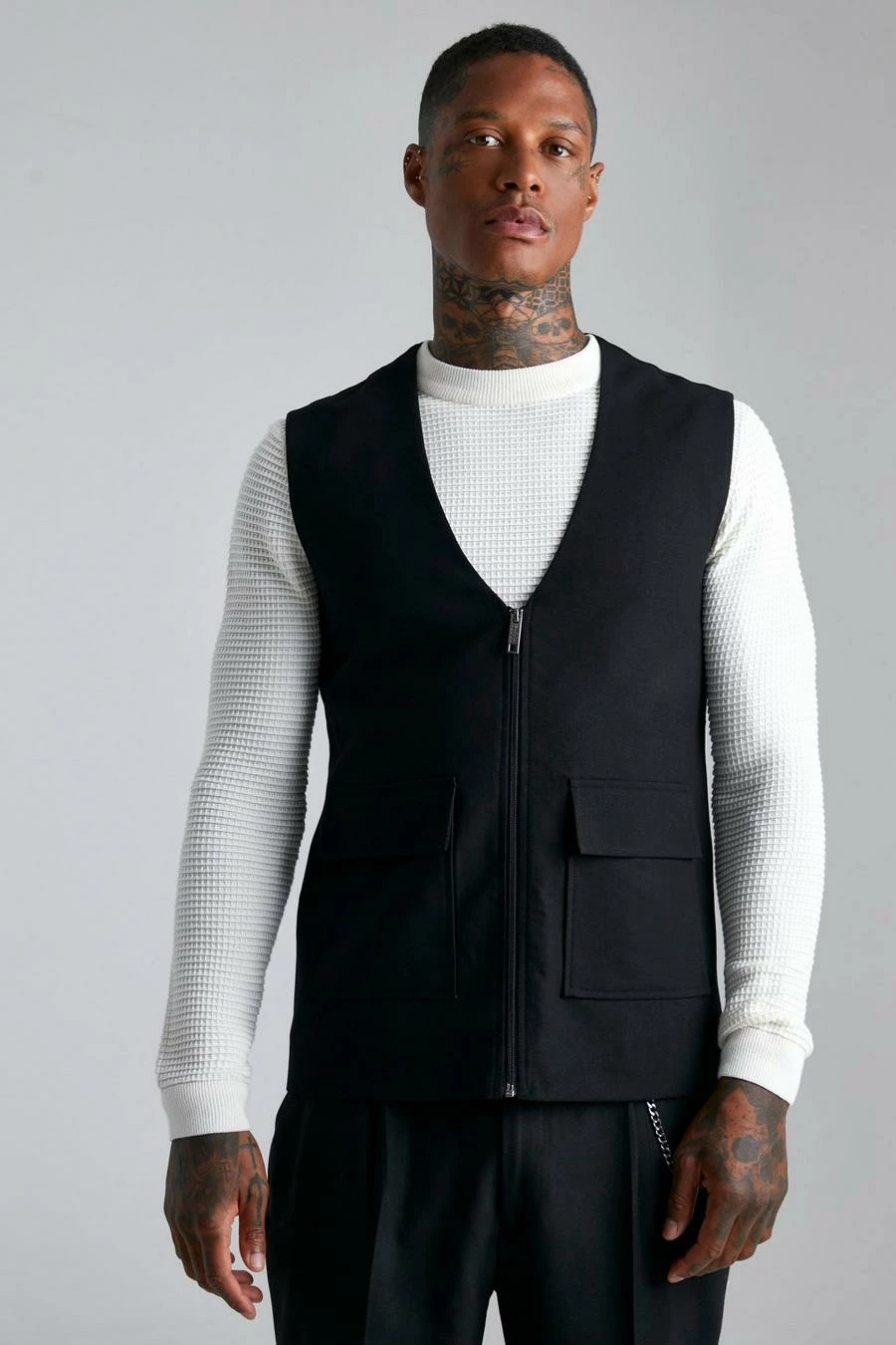 62% Polyester, 35% Viscose, 3% Elastane. Model is 6’1″ and wears a UK size M.