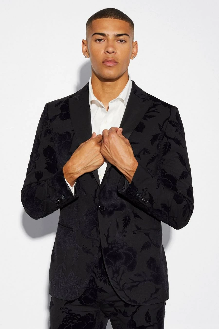Skinny Floral Flock Suit Jacket Black
