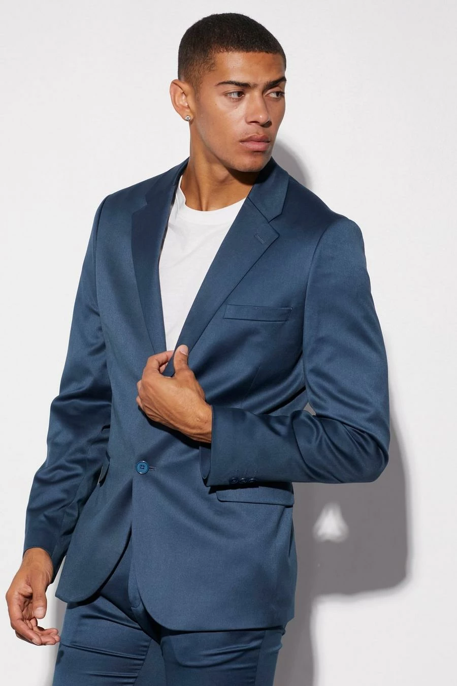 SKINNY SATIN SUIT JACKET AND TROUSER Navy
