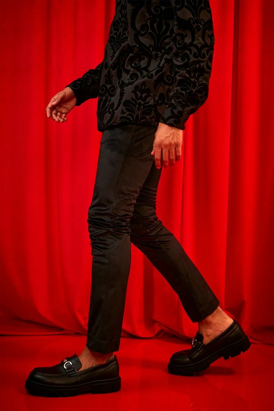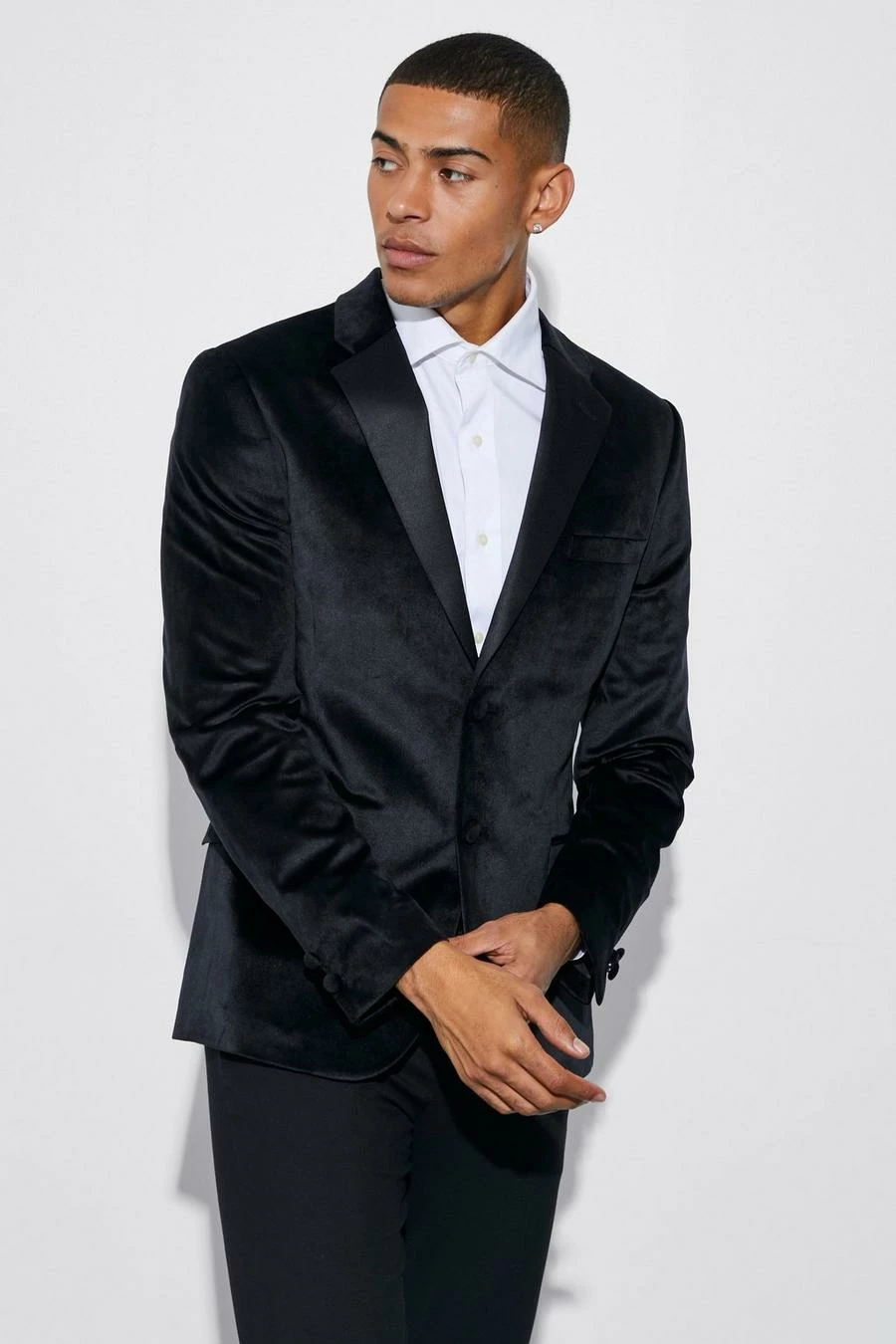 SKINNY VELOUR LAPEL SUIT JACKET AND TROUSER Black