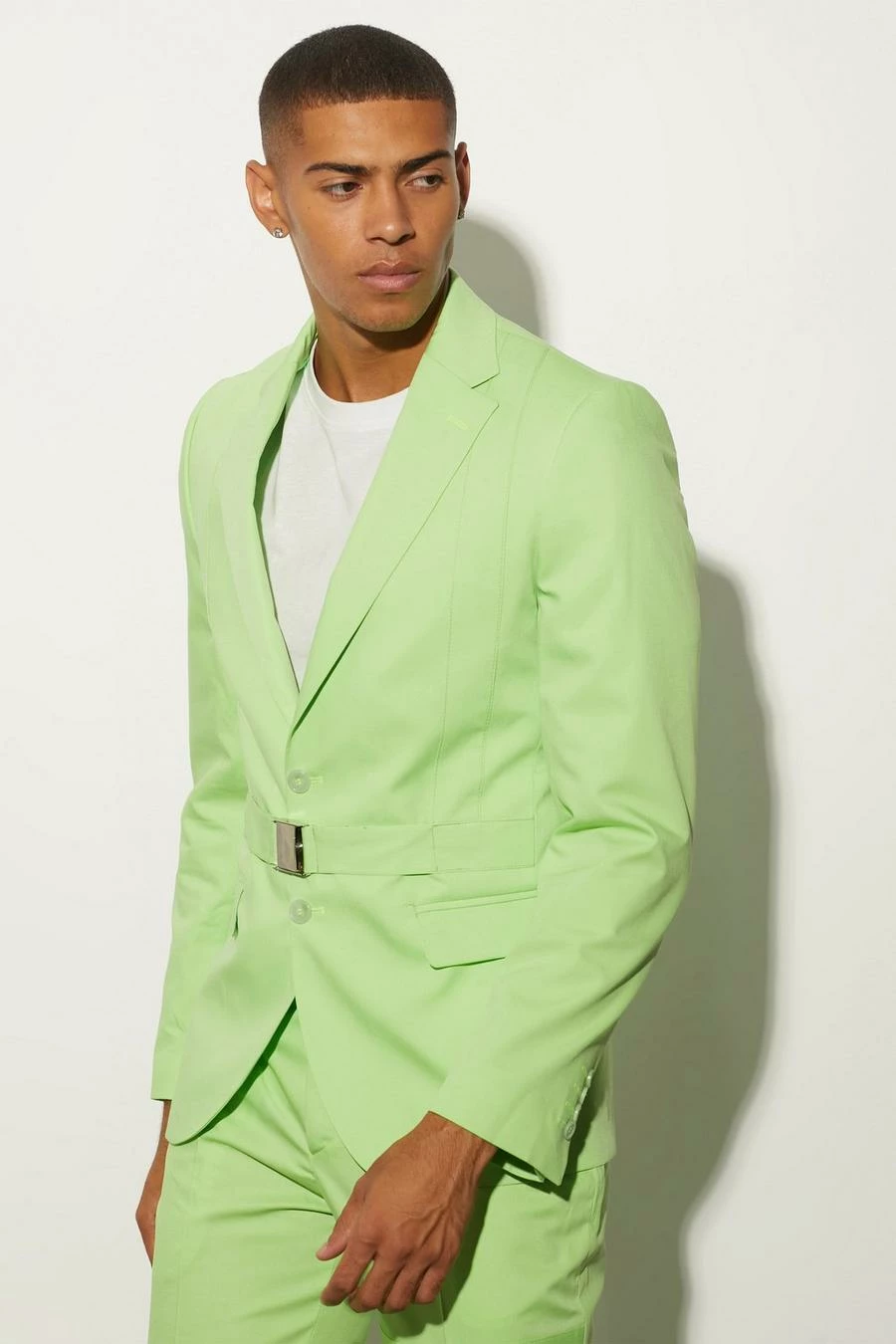 Slim Fit Harness Buckle Suit Jacket And Trousers Lime