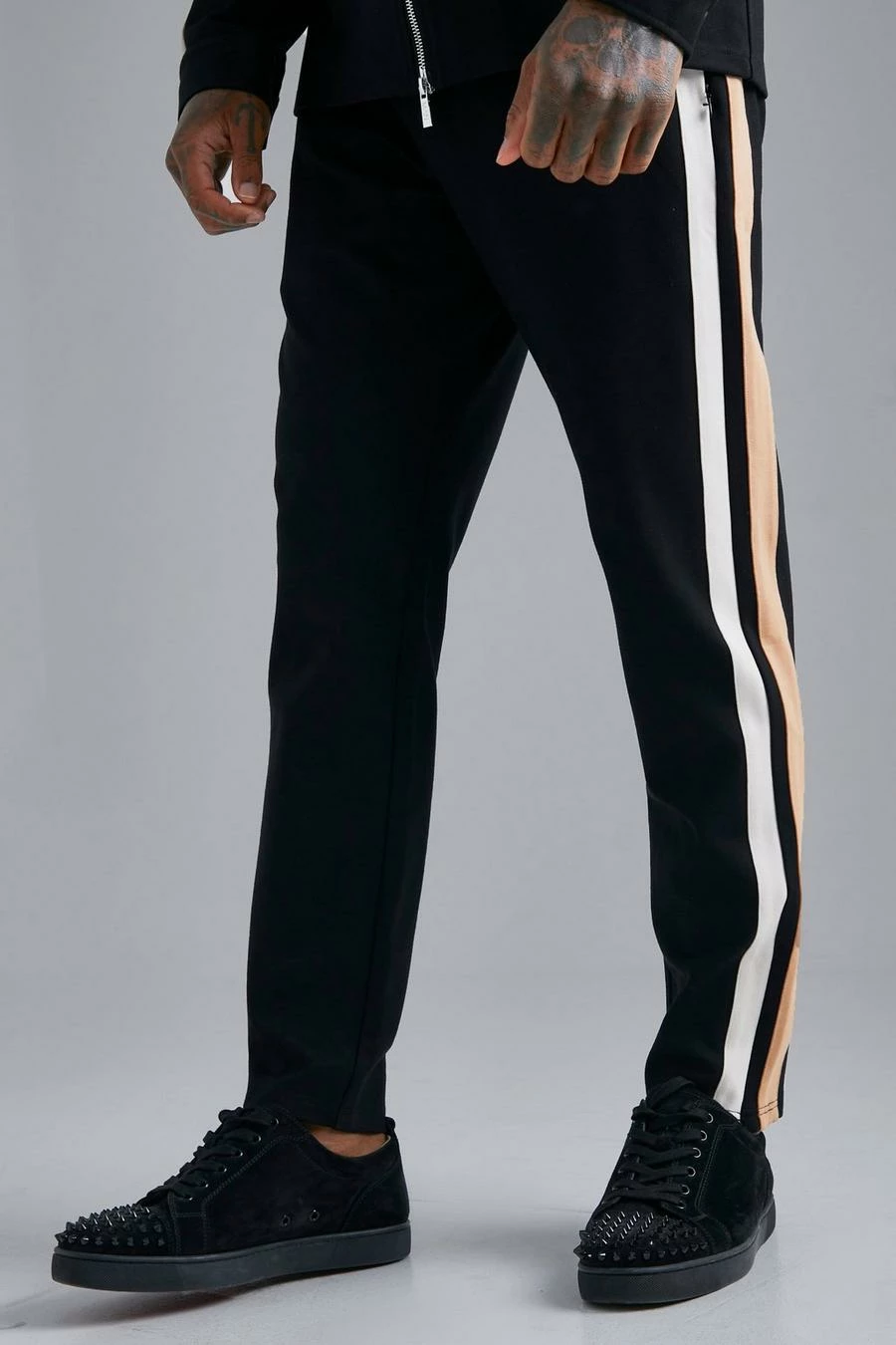Striped Harrington Overshirt And Tapered Zip Detail Trouser Set Black