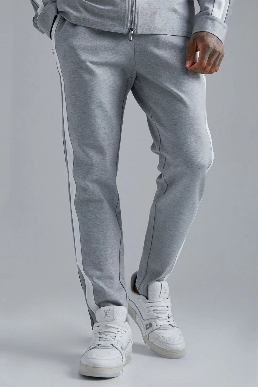 Tailored Striped Overshirt And Tapered Trousers Set Grey