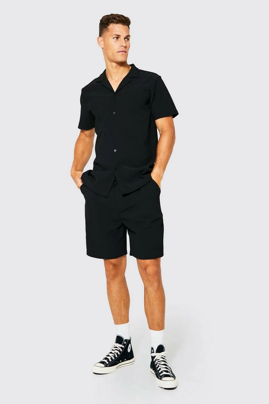 90% Polyester, 10% Elastain. Model Is 6’5 and wears a size L