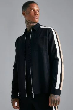 Zip Detail Short Sleeve Shirt And Tapered Trousers Set Black
